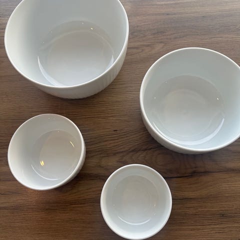 Kähler skål i keramikk med hvit base og dekorative gullstriper rundt. Egnet til servering og bruk i kjøkkenet.