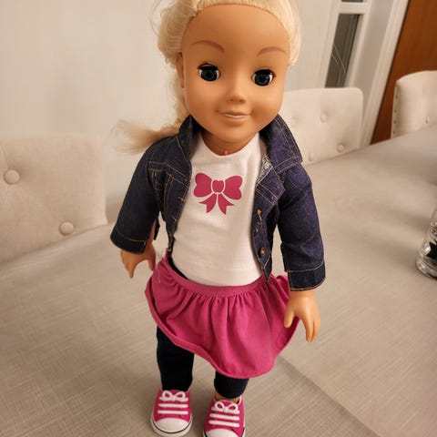 Gutt og jente i fine klær. Står at de ikke er egnet for småbarn. Men kanskje til den litt større jenta
