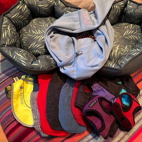 Flott hundegenser med fine farger. Passer til hannhund og tispe. Strikket i sportsragg med reflex fra viking garn. Fin å se på å trygg i mørket. Varm og god. Har selv kjøpt den på Finn.no . Veldig fin men ble litt for liten for min hund dessverre. Selges derfor videre til en heldig hund .str .33 cm fra nakken