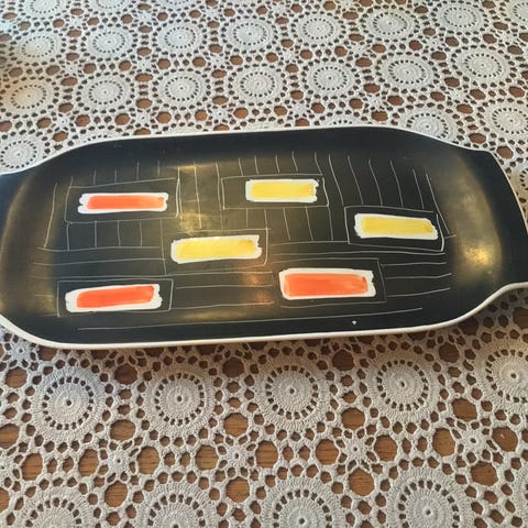 Kunst-fat av Marit Eik, «Steininge slott» fra 2010. Fatet har en diameter på ca. 25 cm. Egnet som serveringsfat eller dekorativt element i hjemmet. Kan kjøpes med vase fra samme serie, 800 totalt eller gi bud