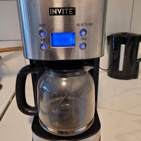Kaffetrakter svart og hvit med glasskanne