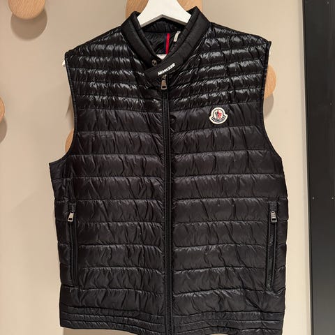 Selger en meget pen Moncler Black Down Roussilon vest i størrelse 1 (tilsvarer Small). Dette er en modell som tilsynelatende ikke produseres lenger, noe som gjør den unik og vanskelig å få tak i. Kun brukt et par ganger.