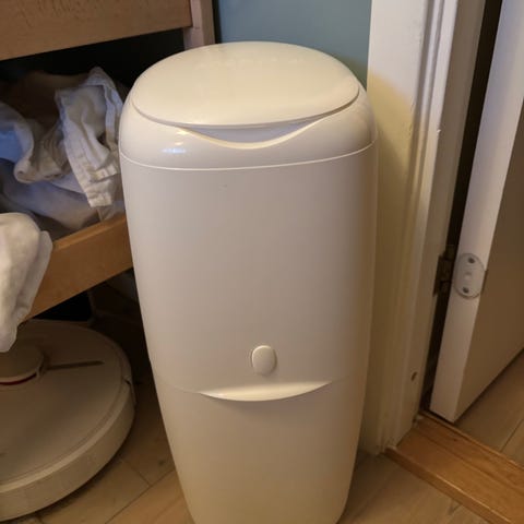 Selger helt ny uåpnet Angelcare bleiebøtte som gjør bleiehåndtering enklere, renere og mer effektivt.
