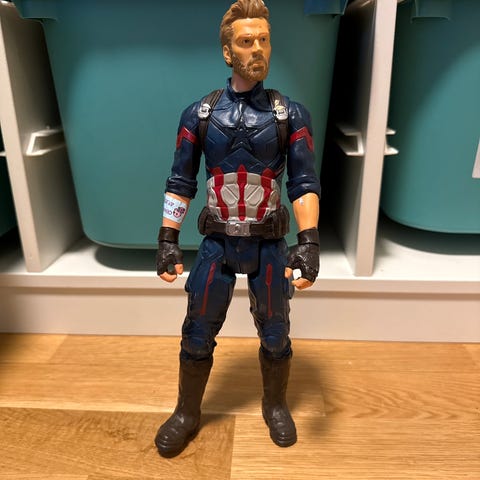 Marvel actionfigurer inkludert flere karakterer, laget i plastmateriale, egnet for barn.
