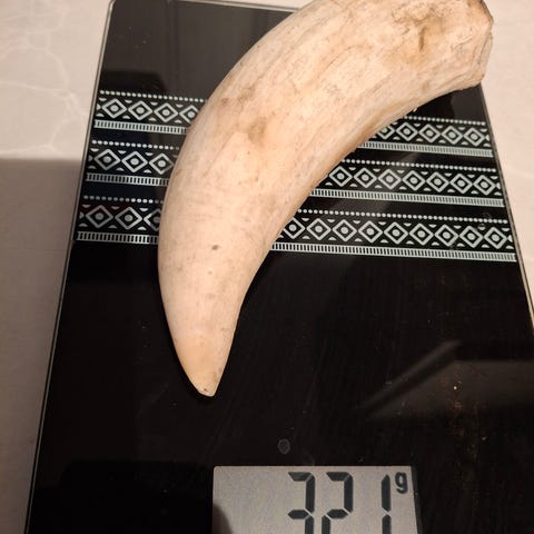 2 Hvaltenner - hver ca 12 cm og 150 gr - kr 350/stk el kr 600 ved kjøp av begge.