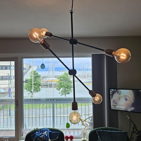 House Doctor taklampe med flere lyskilder. Lampen har et moderne design med flere armer og lyskilder som gir god belysning. Den passer til oppheng i tak og kan brukes i ulike rom som spisestue eller stue.