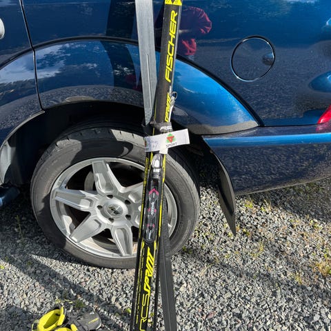 Selger to par langrennski til barn med noen staver. Har stått i en bod, og har dessverre liten informasjon ellers.