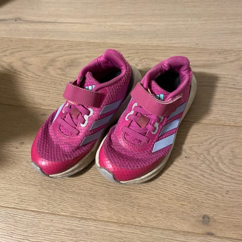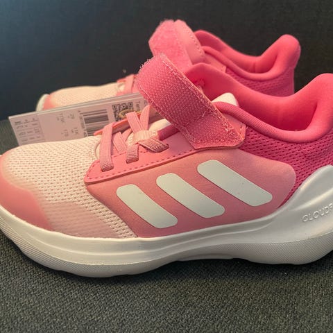 Adidas Barne Joggesko for jente i størrelse 29. Joggeskoene er grå med rosa detaljer og har borrelås for enkel justering. Skoene er laget med slitesterkt materiale og har en solid gummisåle for godt grep.