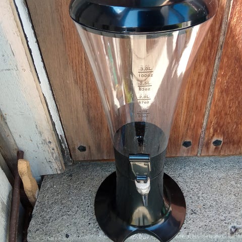 Triton saftdispenser i plast med svart stativ og kran for enkel servering.