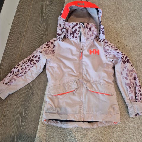 Fint vintersett/ Alpinsett fra Helly Hansen. Jakke i størrelse 122 og bukse i str 128. Brukt som ett sett og selges samlet. Fargen på armene på jakken er falmet. Ingen hull, men mørke flekker enkelte steder som ikke går bort i vask. Slitt nederst på benene, se bilde. Mye bruk igjen. Avtagbar hette. Snøstopper inni jakken.