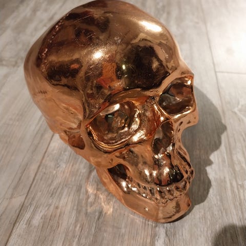 En telysholder med hodeskalle