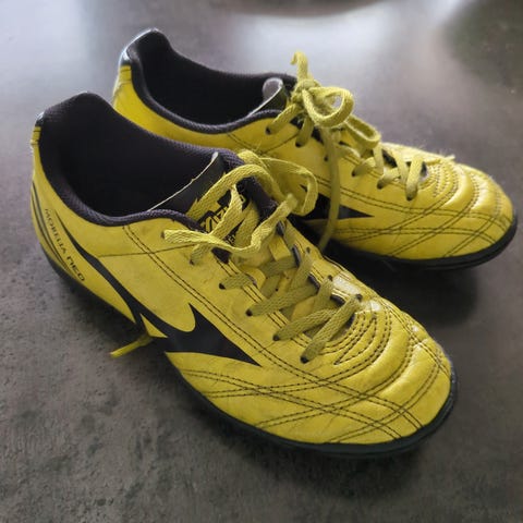 Puma AD Clerv FG fotballsko for barn, størrelse 33, gul farge. Skoene har knotter for gressunderlag og er laget i syntetisk materiale.