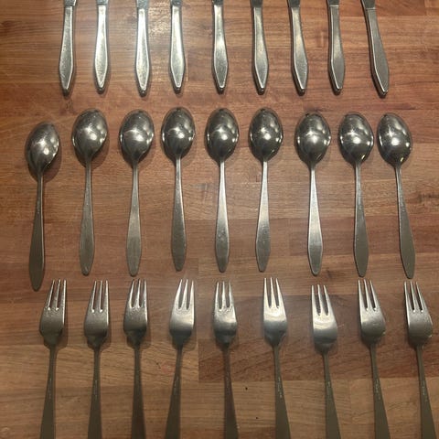 Danske design på sin beste. Retro obelisk bestikker tegnet av Erik Herløw for Copenhagen cutlery. Det er totalt 107 deler inkludert de store serveringsbestikk. Jeg har samla disse over flere år men bestemte meg å selge dem videre for å fokusere med noe andre prosjekt i huset. Bare ta kontakt om du er interessert