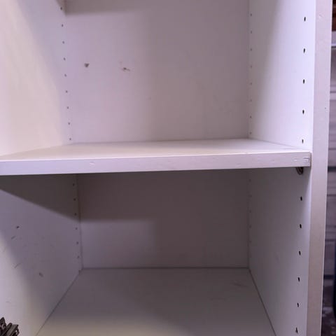 Skap med 6 hyller i gis bort, fin dus rosafarge. Plasseffektiv. God stand uten synlige merker. Gis bort til den første som henter.