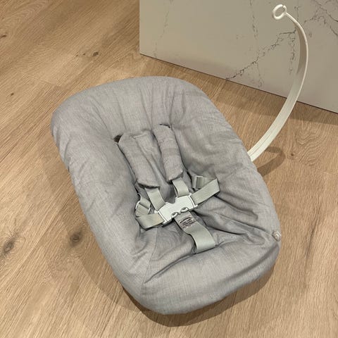 Pent brukt Stokke Tripp Trapp-stol selges. Høy rygg og bøyle (vanlig rygg medfølger). Brukt av besteforeldre til sporadisk besøk av barnebarn. Ryggpute og sittepute (1 sett) kan følge med om ønskelig.