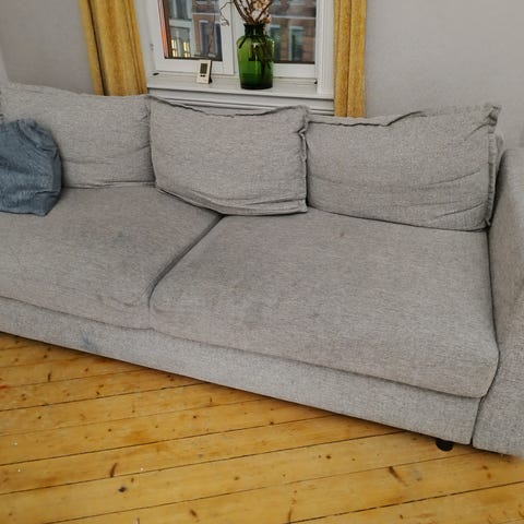 IKEA FRIHETEN 3 seter sovesofa i lys grå farge. Sofaen har sovefunksjon og oppbevaringsplass under setet. Egnet for bruk i stue eller gjesterom. Kjøper må selv demontere og bære sofaen ned fra andre etasje.