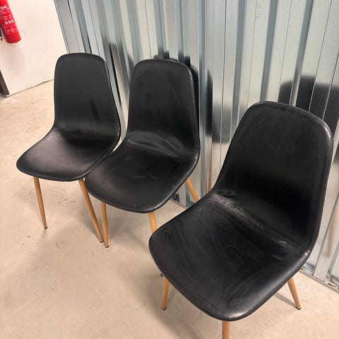 4 IKEA spisestoler kjøpt på Finn tidligere. De er godt brukt, men kan sikkert piffes opp med et sterkere type vaskemiddel enn Zalo. Gode å sitte i! Gis bort ved henting asap