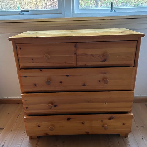 IKEA Leksvik kommode i furu gies bort mot henting.