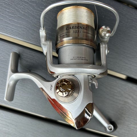 Abu Garcia Ambassadeur Five fiskesnelle, i pen stand.