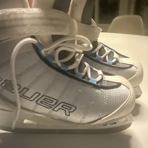 PS-41 Davos barn skøyter i størrelse 33. Skøytene er hvite og designet for barn. De er lite brukt.