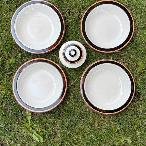 4 vakre Arcopal France skåler fra 70tallet. Vakkert floral dekor. Ingen bruksmerker. Strøkne. 13 cm I diameter og 7 cm høye. Kan selges enkeltvis men helst samlet. 75 pr stk. Samlet 250.