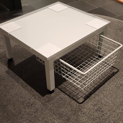 Ramme med uttrekkbar hylle, til å ha mellom vaskemaskin og tørketrommel, Liten bit av kanten er bruket, men blir limt på før salg. Ingen betydning for funksjonaliteten. Ny pris ca 1000. Se link for mer info: https://share.google/yKPWiZJLjzqpoINOy