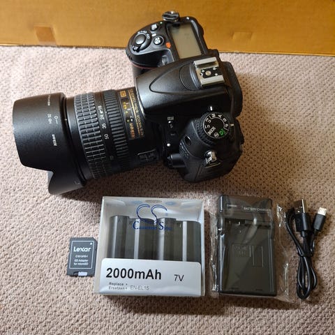 Selger pent brukt Nikon D7000 da jeg oppgraderer til fullformat. Følger med lader, batterigrep, ett batteri og Nikon af-s 18-70mm f3.5-4.5 dx. Autofokus på objektivet fokuserer ikke men i manuel fokus så funker den helt fint.