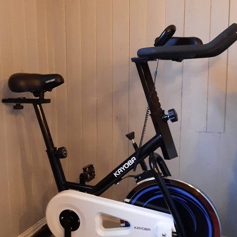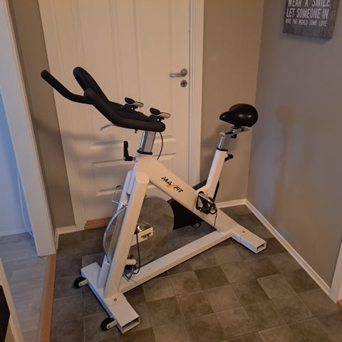 Stjernemerke spinningsykkel i svart farge. Treningsutstyr for innendørs sykling, egnet for kondisjonstrening og styrking av beinmuskulatur.