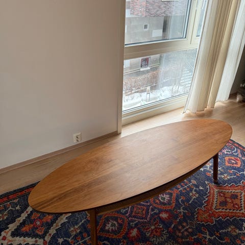 Veldig fint bord, men vi selger det billig da det har en del skjolder i bordplata pga fukt. Se bilder.