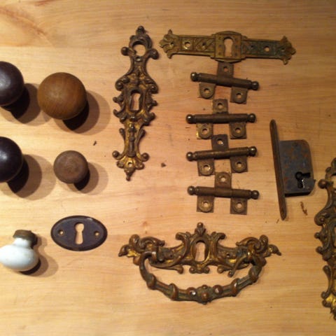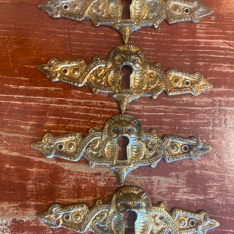 6 stk. fine møbelbeslag til skuffer eller skap. I antikk/messing farge.