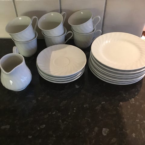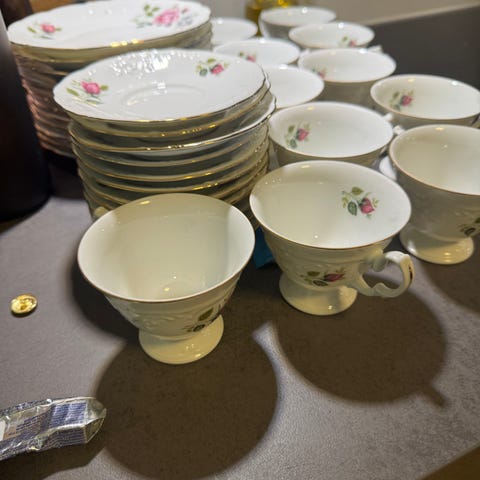 13 kaffekopper og 14 kaffefat (3 størrelser)