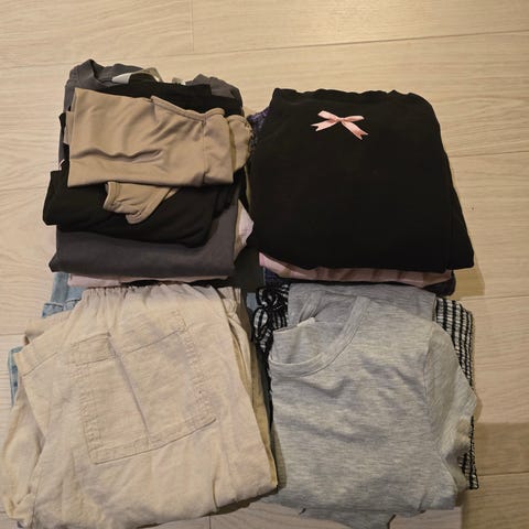 Noen plagg er nye og ubrukte, noen er mer brukt og kan ha bruksmerker.