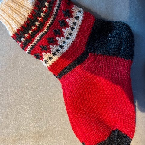 Hjemme strikket sokker i størrelse 36 ca. Strikket i drops fabel som består av 75% ull og 25% polyamid.