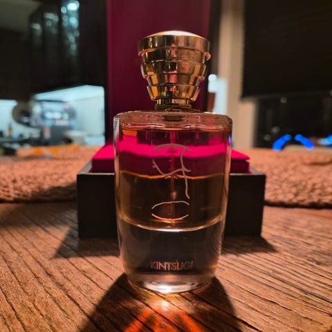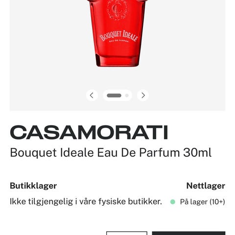 Casamorati Bouquet Ideale Eau de Parfum i en rød flaske med gullfarget hette. Parfymen kommer i en dekorativ eske med illustrasjon. Flaskens design og emballasje indikerer et luksuriøst produkt.