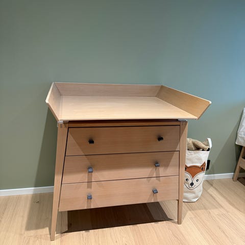 Selger en flott og funksjonell Leander babyseng, kjent for sitt tidløse design og høye kvalitet.