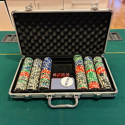 Classic Spill Pokersett fra Printworks byr på en elegant måte å spille poker på. Settet er komplett med profesjonelle spillekort og pokersjetonger, alt du trenger for en vellykket spillkveld. Kommer med instruksjoner på engelsk, fransk og tysk.
