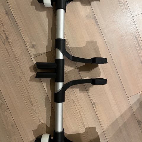 Bugaboo adapter for barnevogn. Adapteren er designet for å feste kompatible bilseter eller tilbehør til Bugaboo barnevogner. Den er laget av robuste materialer for sikker montering.