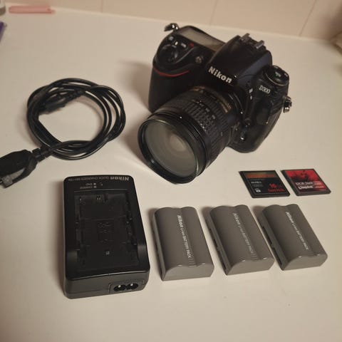 Nikon D300 speilreflekskamera + 2 batterier, 3 minnekort, lader, reim etc