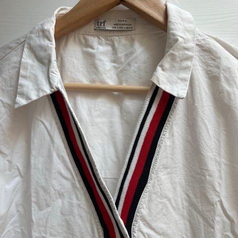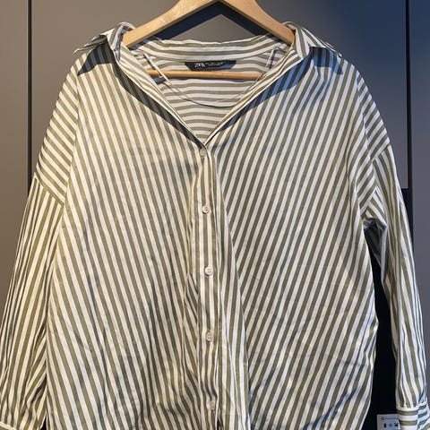 Zara Skjorte Hvit og grønn stripete, str L