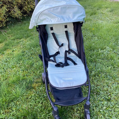 Petite Cherie barnevogn. Hjulene er solide og egnet for variert terreng , de kan også låses. Brukt til sovevogn på veranda for det meste så dekkene er fine. Det er med egen pumpe. Kan legges sammen flat når man tar av bagdelen.