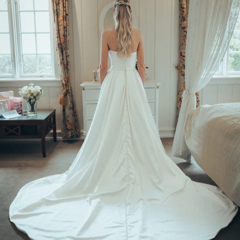 Tilpasningene på kjolen er gjort av salongens skredder.