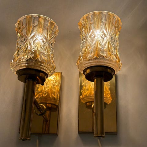 Vegglampene har vært montert på bad siden tidig 90-tallet. Opphav og alder uvisst. Alt fungerer som det skal. Oppgitt pris er per stykk. 3 stk til salgs.