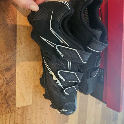 White Sykkeltrøye kortermet i blå og hvit farge. Sykkeltrøyen har glidelås foran og elastisk materiale, designet for sykling. Trøyen er ubrukt da det er damestørreloe og skulle vært herrestørrelse. Den har blitt liggende i skapet.