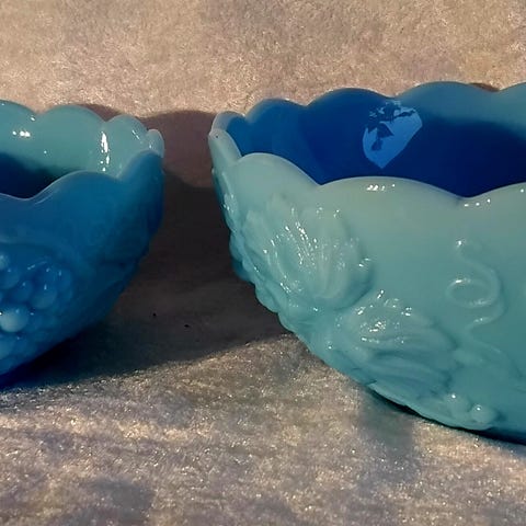 Art Deco fat i grønt pressglass typisk fra perioden 30 tallet, 300kr stk eller begge for 450