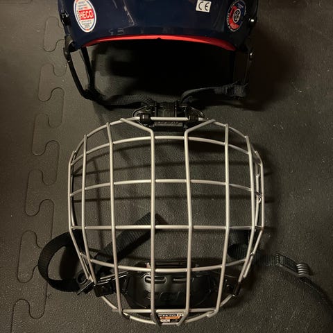 CCM Tacks 70 ishockeyhjelm med gitter i str M. Hjelmen er svart og designet for ishockey. Hjelmen er brukt 2 ganger, så den ser ubrukt ut. Gitteret sitter med 2 skruer så kan enkelt tas av.