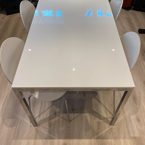 Selger en godt brukt spise bord med 6 stoler, stolene har synlig brukt merke som viser på bilder
