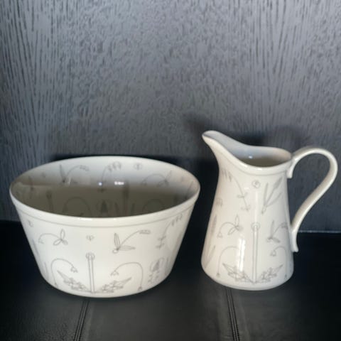 Fin retro krukke med lokk fra Stavangerflint med koselig dekor.. pent eksemplar , eneste å bemerke er noen mikronsg under krukken som er lite synlig. Se bilder