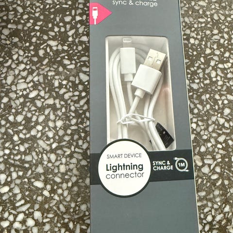En stykk usb a lader med spenningen 5V, 1A. Grei reserve lader / reise lader