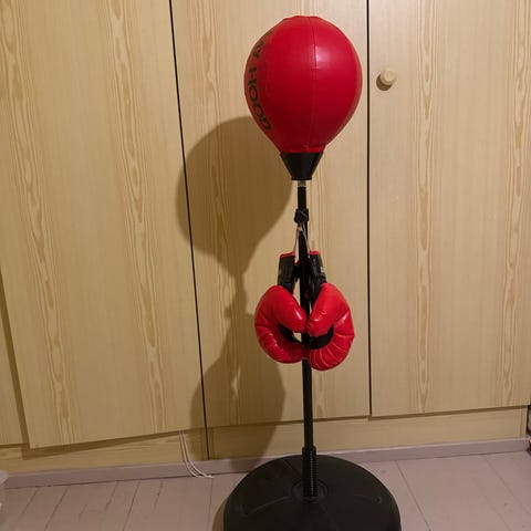 Pent brukt boksestativ. Merke på den ene hansken, se bilde.