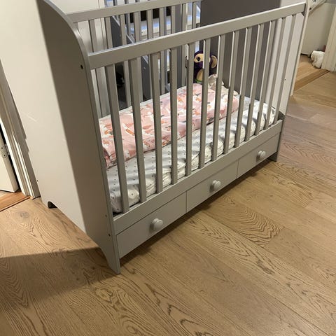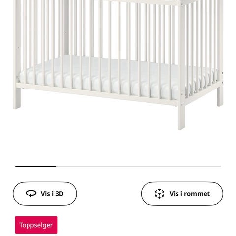 IKEA GULLIVER Sprinkelseng med mål 60x120 cm. Laget for barn og designet med spiler for sikkerhet og ventilasjon.